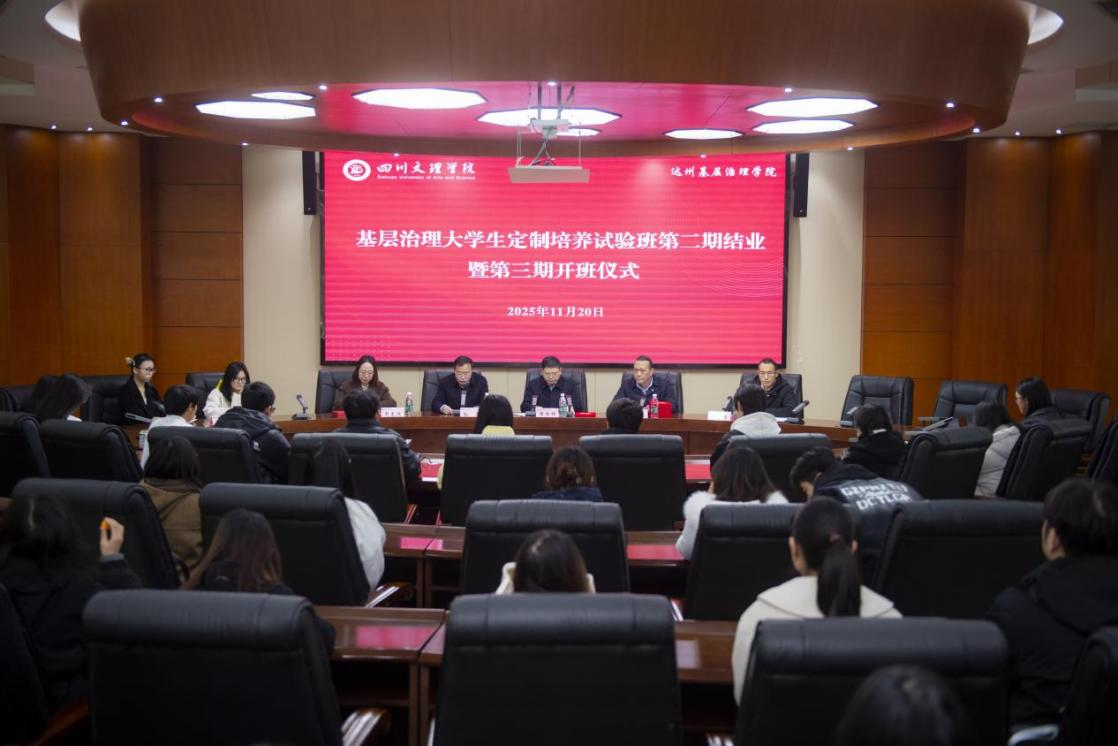 11月20日,基层治理大学生定制培养试验班第二期结业仪式、基层社区治理微专业暨基层治理大学生定制培养试验班第三期开班仪式在学校举行。四川文理学院校长、达州基层治理学院院长侯忠明,中共达州市委社会工作部部长、两新工委书记余世斌出席开班式。四川文理学院马克思主义学院院长、达州基层治理学院副院长孙杰主持开班式。